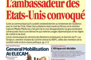L’Ambassadeur américain a demandé au Président Biya de rentrer par la grande porte dans l’histoire, en lui citant Mandela et Washington qui sont partis d’eux-mêmes du pouvoir. Certains peuvent s’en réjouir et d’autres s’en effaroucher, mais là n’est pas le problème. Le vrai problème est qu’est-ce qu’on fait ? Quand …