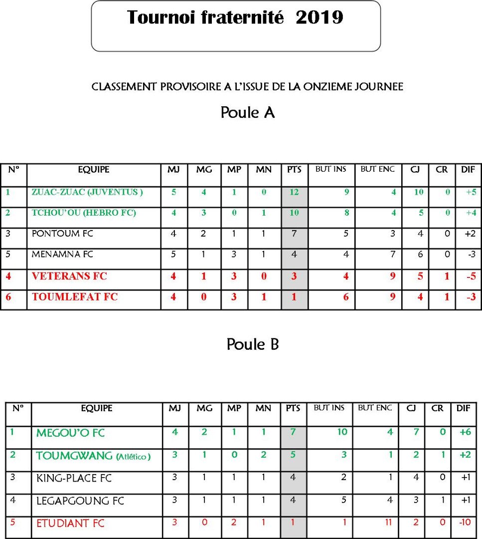 *TOURNOI FRATERNITÉ DE LA COBY , ONZIÈME JOURNEE : JUVENTUS devient leader de sa poule , NTOUMLEFAT accroche HEBRO DE TCHOU’OU.*
