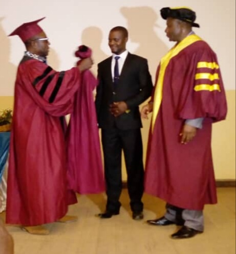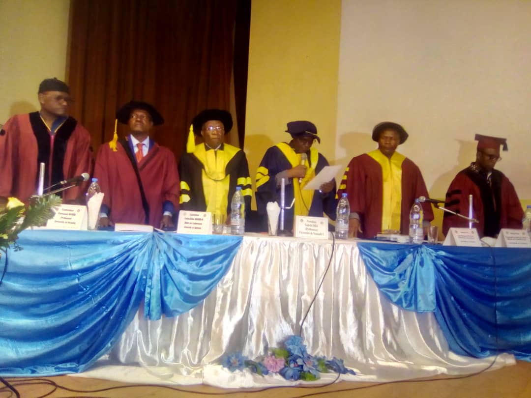 L’impétrant vient de soutenir ce vendredi 13 Mars 2020 sa thèse de doctorat/PhD en linguistique appliquée dans la salle de conférences et de spectacle de l’Université de Dschang sur le thème *<< Pratiques pédagogiques et construction de la compétence communicative en classe de langues Ghomala , yemba et Ngiemboon >>* . Dans l’ensemble mention *#très honorable du jury* constitué de :