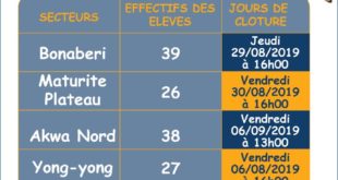 *Communiqué* La première édition des journées d’orientation scolaire à l’attention des élèves et étudiants Batcham de Douala et ses environs, s’est tenue le samedi 21 septembre 2019 au foyer Fiela à Bépanda La cérémonie a été présidée par Monsieur NONA TANE, chef secteur Akwa Nord représentant le Chef de la …