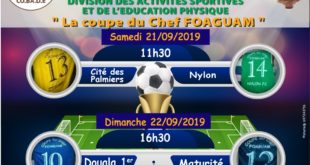 *Communiqué sportif* _*Coupe du Chef, c’est parti*_ Le match d’ouverture de la Coupe du Chef *FOAGUAM NOGNING Serge* opposera le secteur *NYLON* au secteur *DOUALA IER* le 8 septembre 2019 à 14h au Centre d’Accueil de de Bépanda. C’est la substance du tirage au sort qui a eu lieu au …