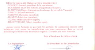 COMITE DE DEVELOPPEMENT DU GROUPEMENT BATCHAM – CHEFFERIE SUPERIEURE DE 1ER DEGRE , CODEGBA : Récépissé de déclaration N°016/RDA/F13/BAPP du 23 Octobre 2003 ; COMMISSION ELECTORALE ET DE REVISION DES STATUTS B.P. 68 Batcham / codegba2003@…/ E-mail: samueltchoffo@… , Tél.: (+237) 78 xx yy 28 / 99 aa bb 63 Batcham le …