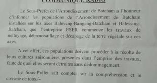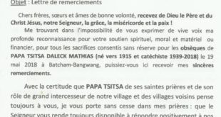 Lettre de remerciements de la paroisse Bon pasteur de Batcham-Bangwang